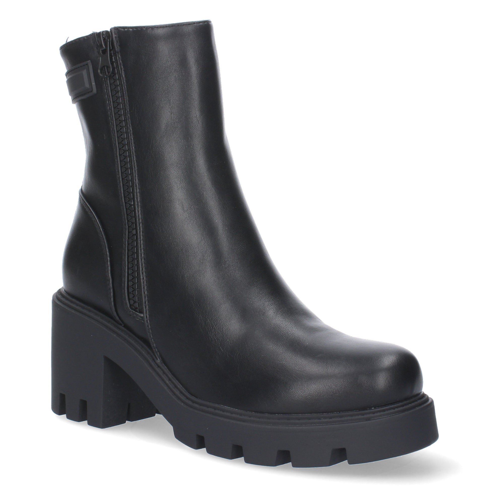 Botín de Tacón Bajo para Mujer Comodo adorno en la caña y Cierre de Cremallera.