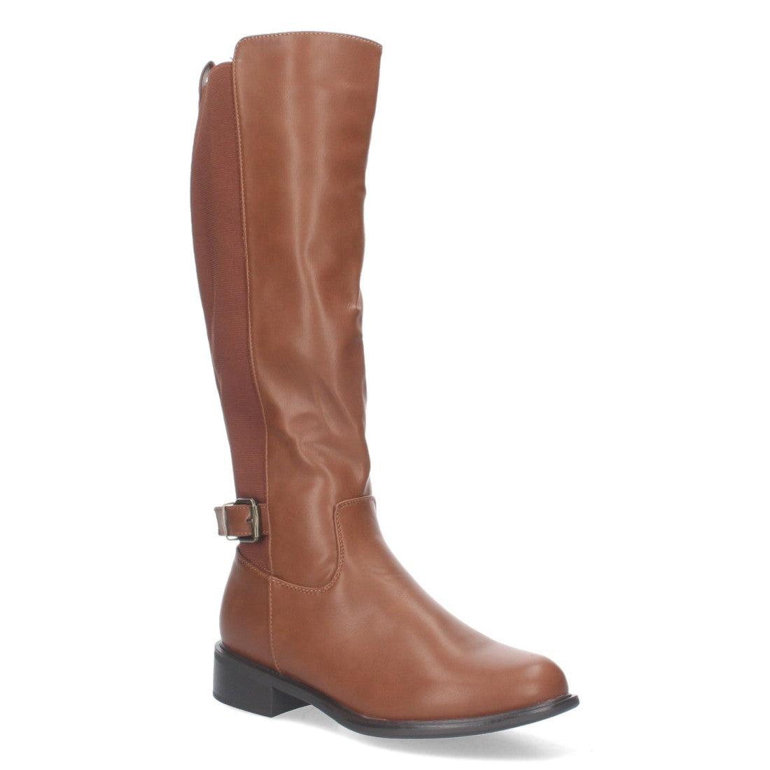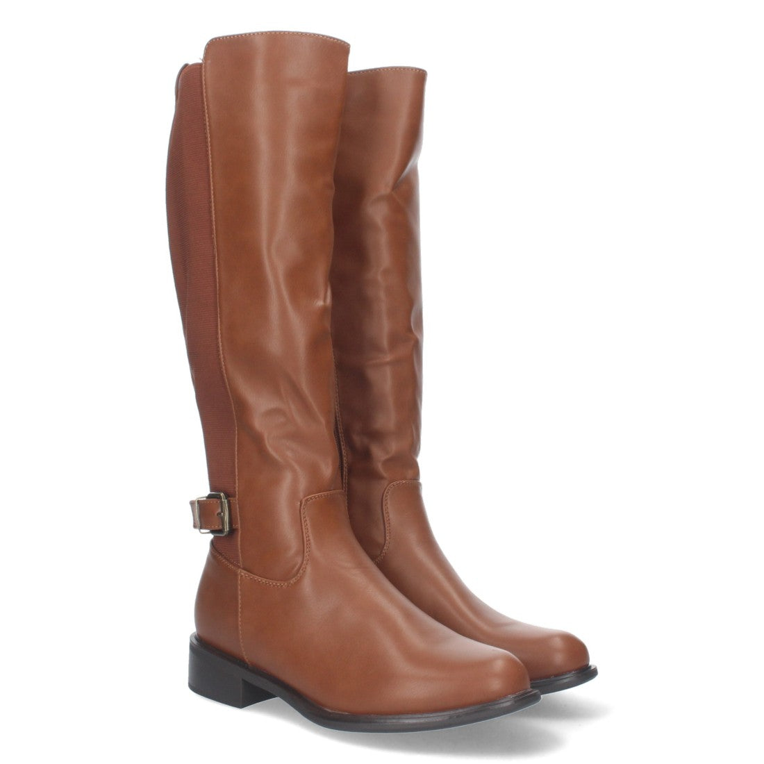 Bota Lisa de Tacón Bajo con Cierre de Cremallera y Adorno de Hebilla en el Talón. Caña de 37cm