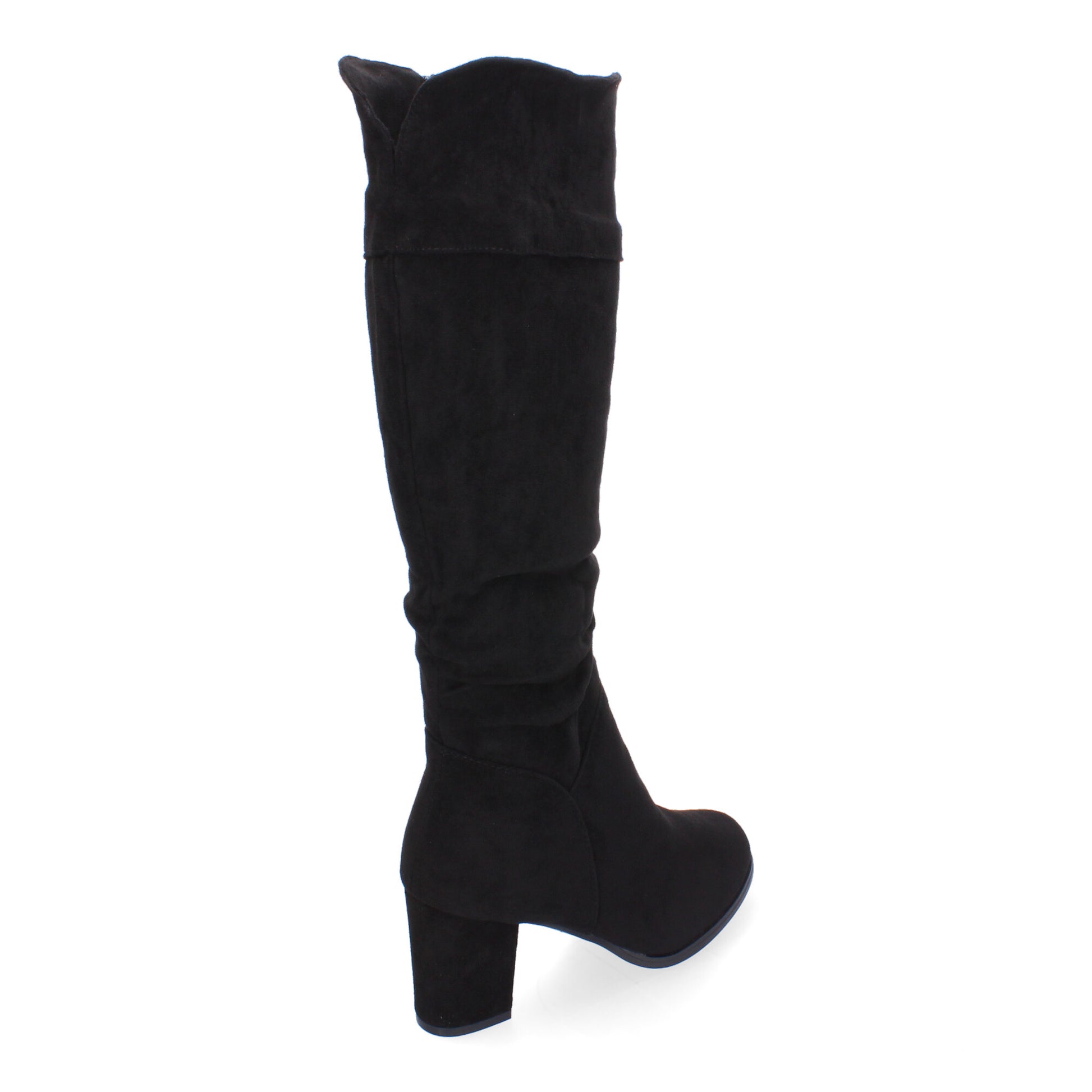 Botas de Tacón para Mujer Comodas y Elegantes Detalles de Caña Arrugada Puntera Redonda y Cierre de Cremallera Lateral.