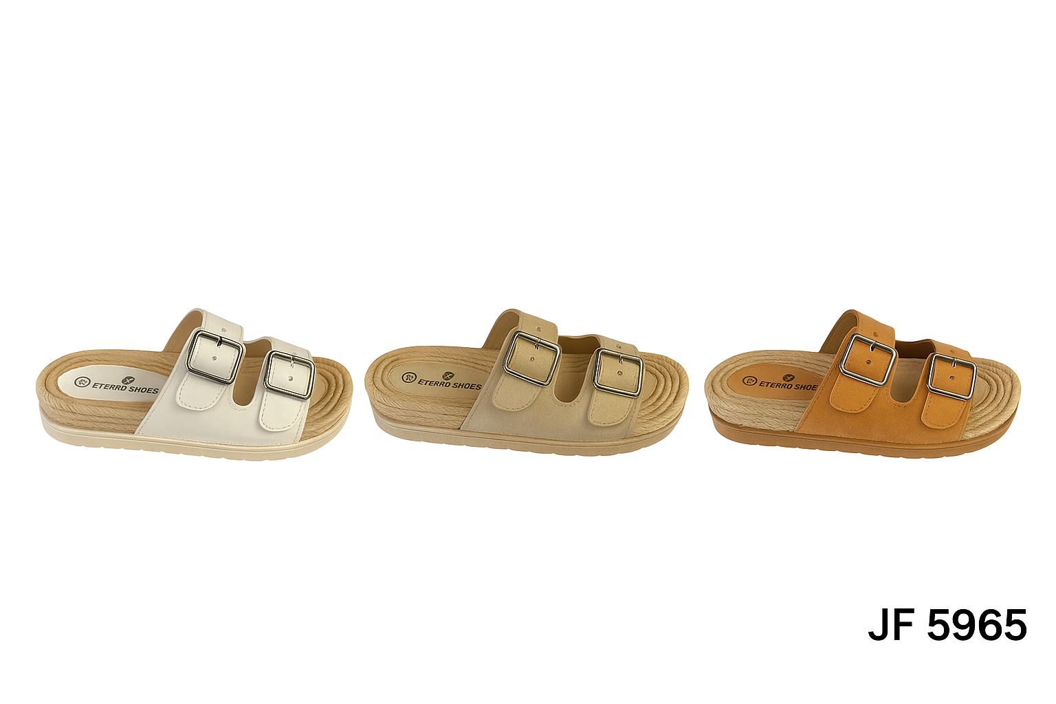 Sandalia tipo bio con doble hebilla y suela de yute, perfecta para un look casual y relajado. Su diseño cómodo y moderno brinda estabilidad y frescura en cada paso. Ideal para combinar con shorts, vestidos o jeans. ¡Tu aliada ideal para disfrutar el verano con estilo y confort!